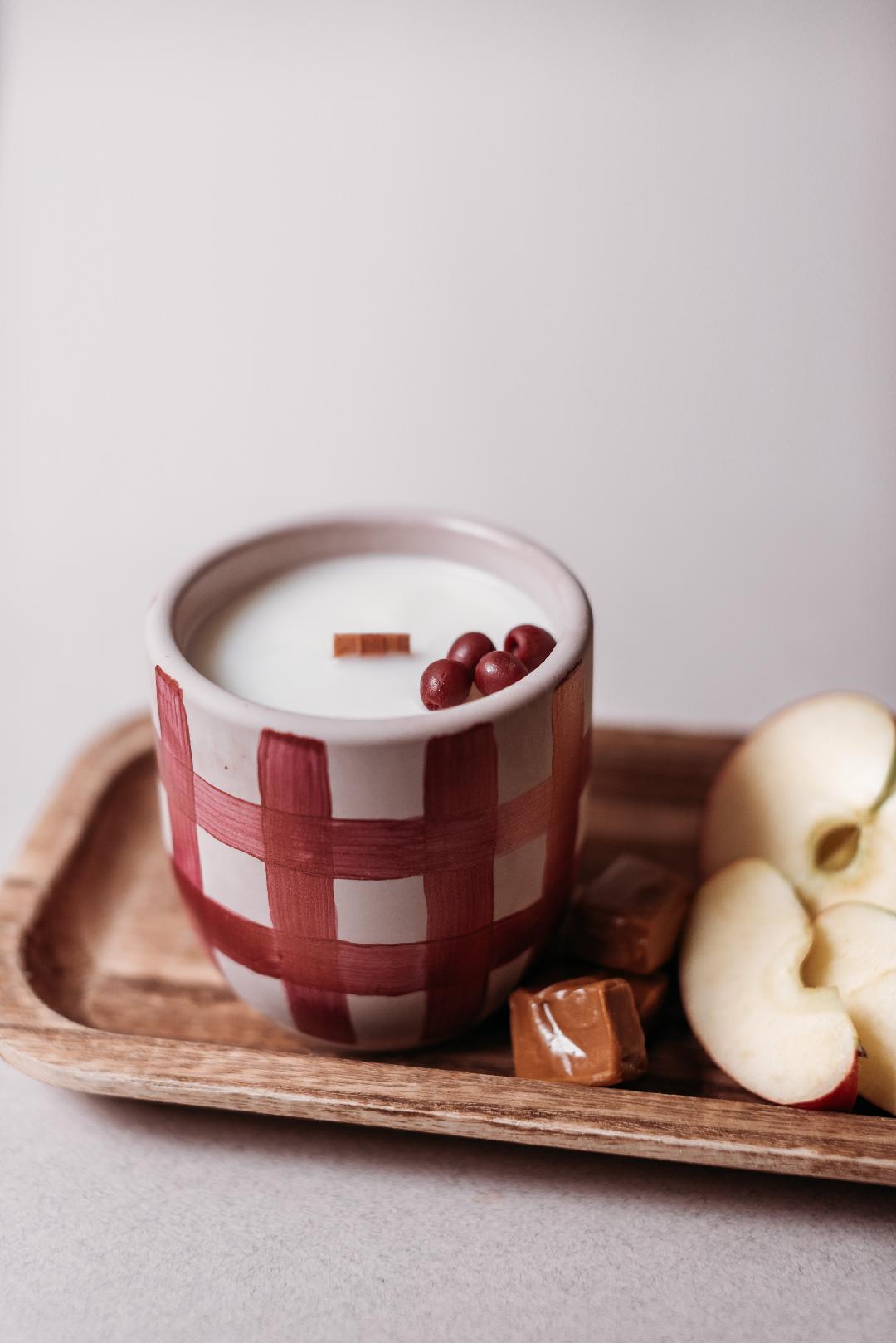 Experience the vibrant aroma of your favorite fall festival where the air is filled with the irresistible scent of tart, juicy apples coated in a luscious layer of rich caramel. Hints of vanilla and cinnamon swirl through the fragrance, bringing back joyful memories of a crisp autumn evening with a caramel apple treat.
