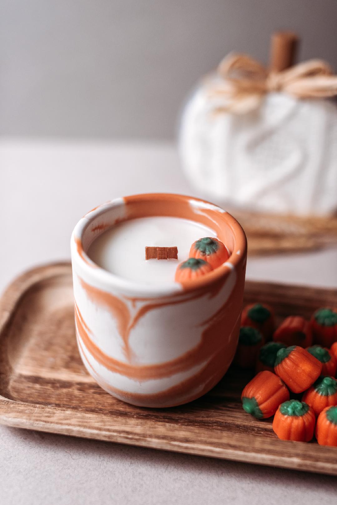 This inviting blend features the rich aroma of freshly carved pumpkins complimented by creamy butter cream, cinnamon clove and nutmeg.